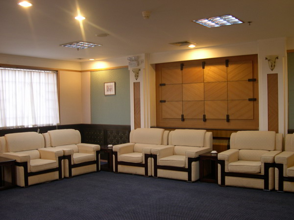 及大型顯示屏,電腦投影儀、幻燈機,錄象機,文件粉碎機。室內(nèi)四周大板玻璃,采光非常好,配有衣帽間、貴賓休息室以及專門的復印室。