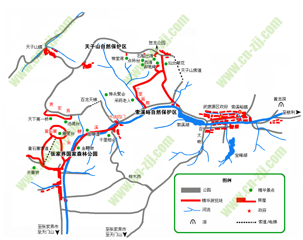 張家界景區(qū)分布圖