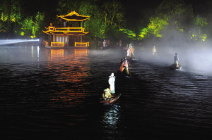 《印象西湖》的火爆,僅僅是杭州夜間演出市場的冰山一角。在城市的東面和南面,另外兩臺演出,《西湖之夜》和《宋城千古情》,每晚同樣爆棚,節(jié)假日和黃金周常常一票難求。今年《宋城千古情》上半年接待觀眾達(dá)160多萬人次,同比增長了35%,平均每周上演30場。為了滿足不斷增長的市場需求,主辦方把座位從2000個增加到3000個,今年在節(jié)目單中新加入了越劇《十八相送》,滿足外地客人的需求。