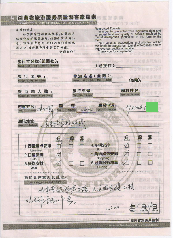 云南張小姐一行18人旅游質(zhì)量回饋:張家界旅游真不錯(cuò),人文服務(wù)挺不賴,歡迎來(lái)云南作客!