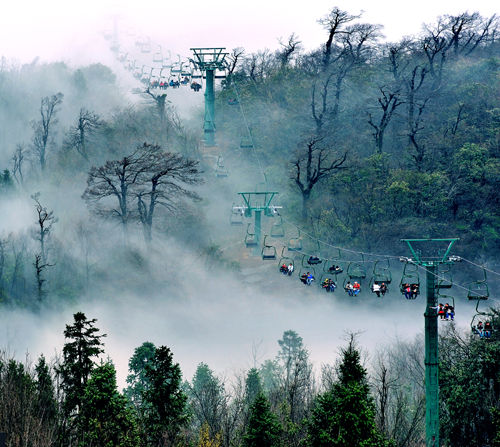 特別提示:從櫻桃灣返回索道上站,大家可選擇從東、西、中線步行返回,也可以乘坐山頂森林觀光纜車(觀光纜車費用不包含在大門票中)至云夢仙頂,沿途感受“樹尖驚飛鳥,踏云欲成仙”的快感。到云夢仙頂后再步行至索道上站。
