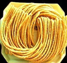 團馓俗稱“糯米馓子”,是苗族、土家族、白族和漢族都愛吃的一種土特產(chǎn)。是將地道的土家糯米蒸熟,倒入一種由特制的木板做底,圍篾做圓圈的模子內(nèi),將熟糯米壓平并用一種農(nóng)家栽種的紫果水或食色素在上面畫“喜”字等吉祥圖案,等冷卻后取出來,曬干、儲藏。逢年過節(jié)時送親友或是招待貴客,吃時用食物油炸酥,膨脹后比原來的面積大2~3倍,味道香脆可口。