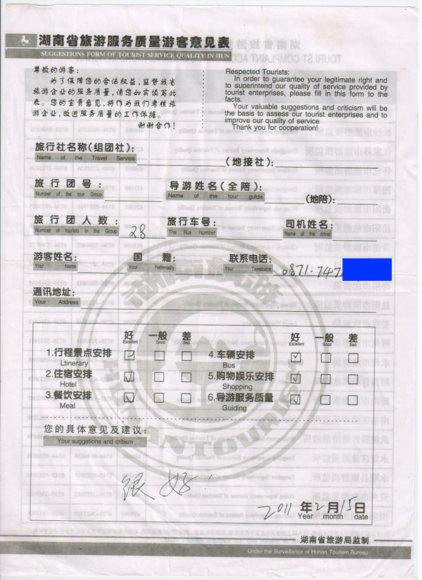 云南昆明一行28人旅游質(zhì)量回饋