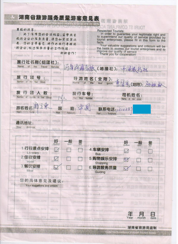 河南濟(jì)源鄭先生一行19人旅游質(zhì)量回饋