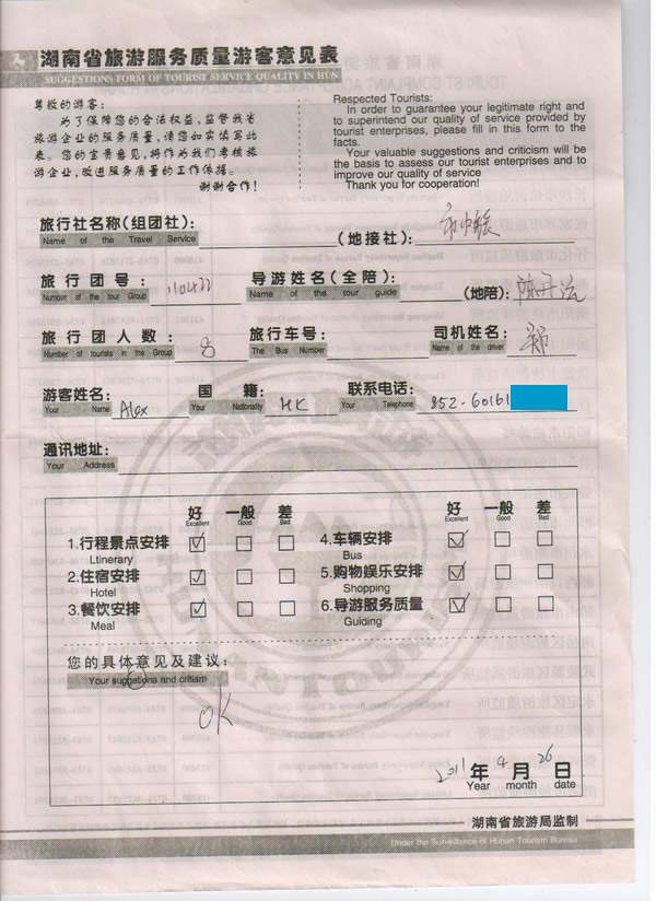 香港alex一行8人旅游質(zhì)量回饋: