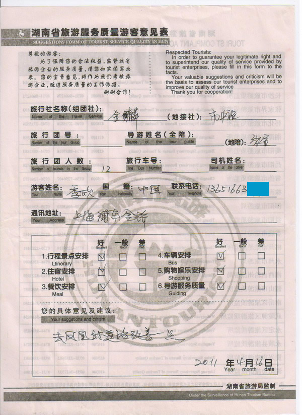 上海季先生一行12人旅游質(zhì)量回饋