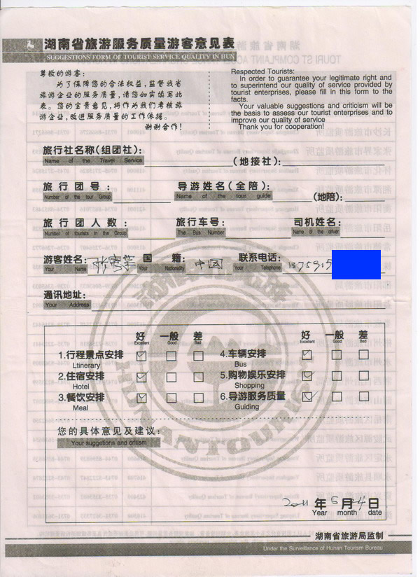 北京張小姐一行10人旅游質(zhì)量回饋