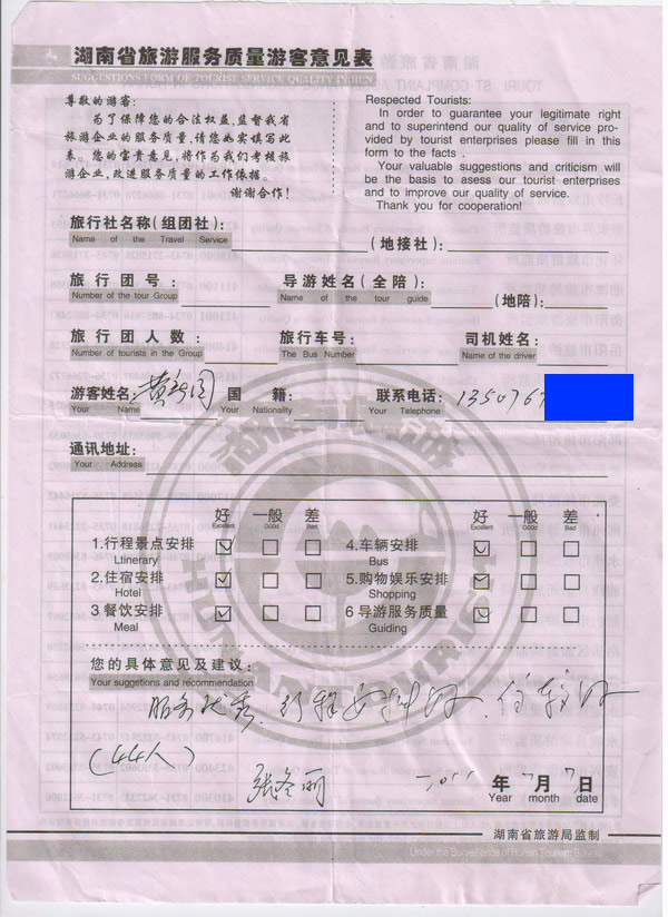 河南黃先生一行44人旅游質(zhì)量回饋
