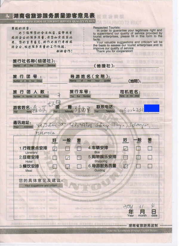 馬來西亞徐小姐一行7人旅游質量回饋