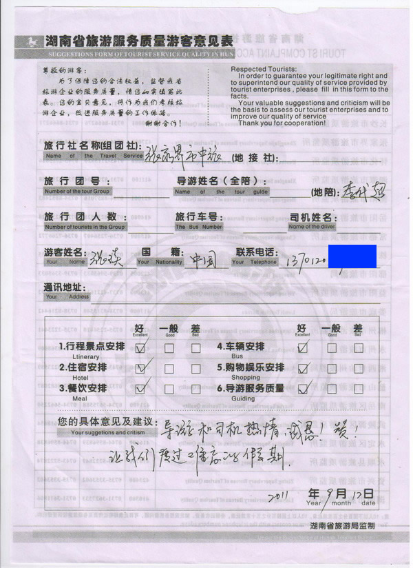 北京張小姐一行12人旅游質(zhì)量回饋