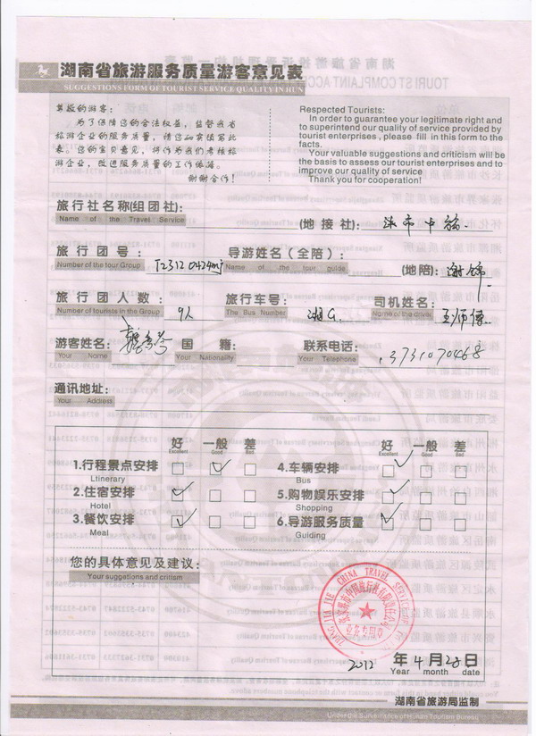 河北魏女士一行9人旅游質(zhì)量回饋