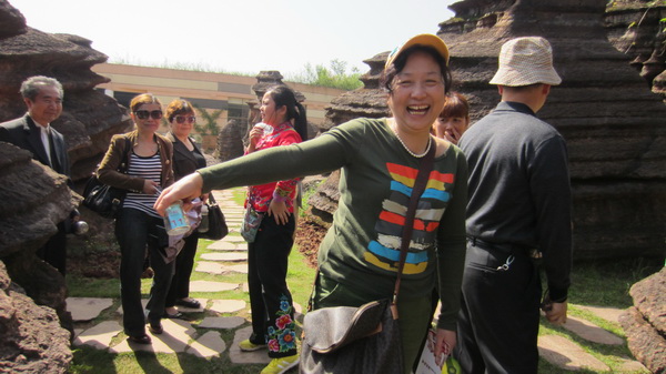 “爸爸,我也要”一位小孩拉著爸爸的衣角羨慕的說到,“好,你和爸爸一起找,好不好?”“好!”父子倆便開始了“尋寶之旅”,“兒子,來,看這是什么?”“是藏寶瓶,爸爸找到了。”整個(gè)現(xiàn)場(chǎng)都被歡樂、開心充斥著。當(dāng)游客拿著藏寶瓶在出口處兌換禮品時(shí),更是樂開了花。一位韓國游客很是具有“尋寶”天賦,竟然尋得了10個(gè)藏寶瓶,當(dāng)她拿著10份驚喜禮品時(shí),美麗的笑容在紅石的映襯下顯得更加燦爛。