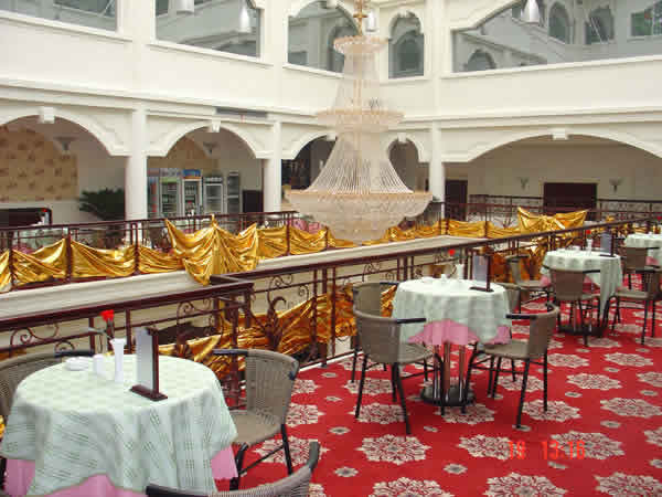 新輝國際酒店位于湖南省鳳凰古城建設(shè)路,總建筑面積5000平方米,總投資1200萬元人民幣,酒店樓層高8層。是一家按國家旅游涉外標(biāo)準(zhǔn)設(shè)計(jì)的高標(biāo)準(zhǔn)酒店(準(zhǔn)四星)。酒店擁有豪華套房8間,豪華雙標(biāo)73間,單間6間,三人間2間?赏瑫r(shí)容納300人進(jìn)餐,娛樂、休閑場所齊備。酒店一樓設(shè)接待大廳,二樓咖啡廳,左棟一樓、二樓為餐廳,前棟二樓休閑中心,后棟一樓至二樓及酒店三至六樓為商務(wù)旅游客房,七樓為會(huì)議室,電梯直上八樓,為觀光茶樓。整樓中央空調(diào)。
