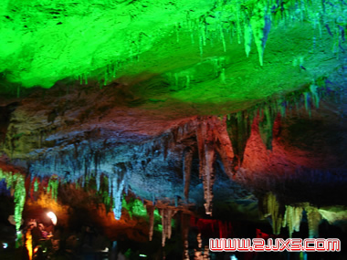 穹頂洞壁的鐘乳石投影水面,與水中晶瑩玲瓏的奇石渾然一體,在彩色燈光的照耀下,愈顯絢麗多姿,使人恍若步入龍宮仙境。泛舟進(jìn)洞四百米許,舍舟登岸,但見鐘乳石千奇百怪,倒懸洞頂,石筍石柱錯(cuò)落:“朝龍殿”、“瑤池”、“靈芝寶菌”、“龍王寶座”等五十多處景觀,今人目不暇接。更兼頭頂?shù)嗡缜,腳下清泉如瑟,冬暖夏涼,使人游興愈濃,流連忘返。龍王洞在石門縣城西北28公里處,正在1829省道干線邊。距龍王洞8公里有熱水溪溫泉療養(yǎng)中心。從龍王洞往西北5公里進(jìn)入張家界市境內(nèi),可不經(jīng)慈利縣城,去索溪峪80公里。