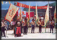 儺愿戲是從古代儺祭活動演化而來的一種原始宗教劇種。每年農(nóng)歷八月十五至臘月二十四日,鄉(xiāng)間驅(qū)除邪魔鬼魅、消除災(zāi)難厄運、慶賀人壽年豐時,請土老司若干人進行表演。儺愿戲有高儺和低儺兩個流派。高儺流行于土家族、白族等少數(shù)民族地區(qū),低儺流行于當?shù)貪h族地區(qū)。共同點都是敬奉“三元” ,“三元”即“三清”,指元始天尊、靈寶天尊、道德天尊,傳說是三個法力無邊的神仙。儺愿分儺戲(或儺舞)、儺技,儺戲有固定故事,有人物對白;儺技則是噴水畫符,雙腳趟燒得通紅的貫頭(鏵口),但見腳底冒煙,卻安然無恙。另外,咬鏵口、過火海(從炭火中過)、摸油鍋、滾榨刺、上刀梯等驚險功夫等,是一種難以理喻的“神秘文化”現(xiàn)象。 |