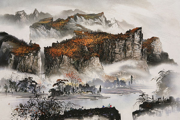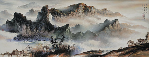 2004年,人民大會堂收藏李軍聲的砂石畫《巍巍天門》。