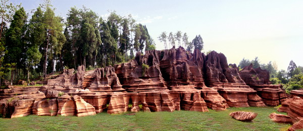 在早奧陶紀(jì)時(shí)期,這里曾是一片淺海環(huán)境,經(jīng)過(guò)地質(zhì)運(yùn)動(dòng),海底被抬起,在大自然風(fēng)化、水蝕、溶蝕和重力的外動(dòng)力地質(zhì)作用下,紅石林地面巖石被分割打磨成石牙、石柱、石林等形態(tài)怪異的海底地質(zhì)奇觀。不用多說(shuō),還是自己體驗(yàn)吧。哦,別忘拾個(gè)海貝帶回家,順便聽(tīng)我擺個(gè)土家人的龍門陣吧。